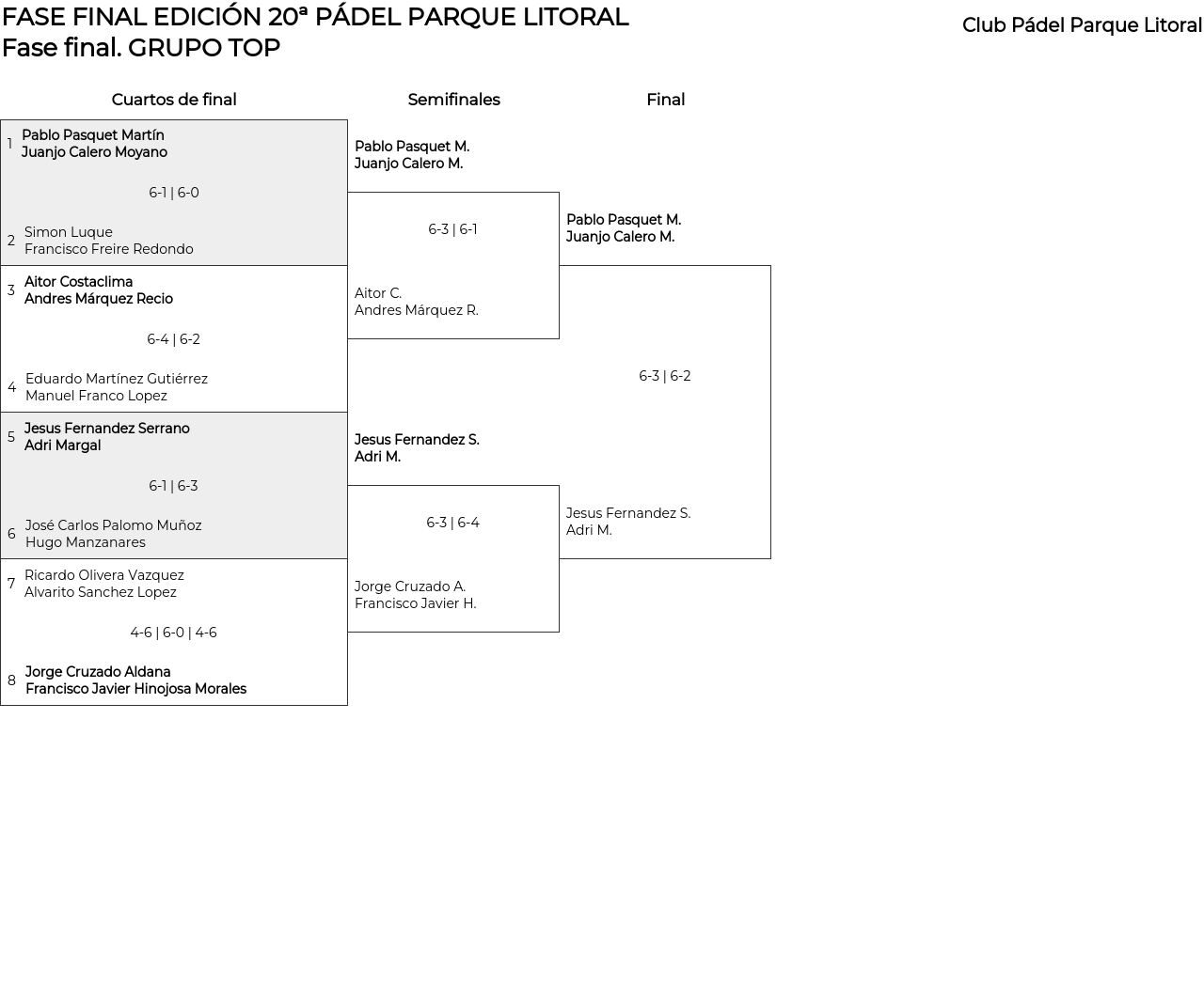 FASE FINAL EDICIÓN 20ª PÁDEL PARQUE LITORAL